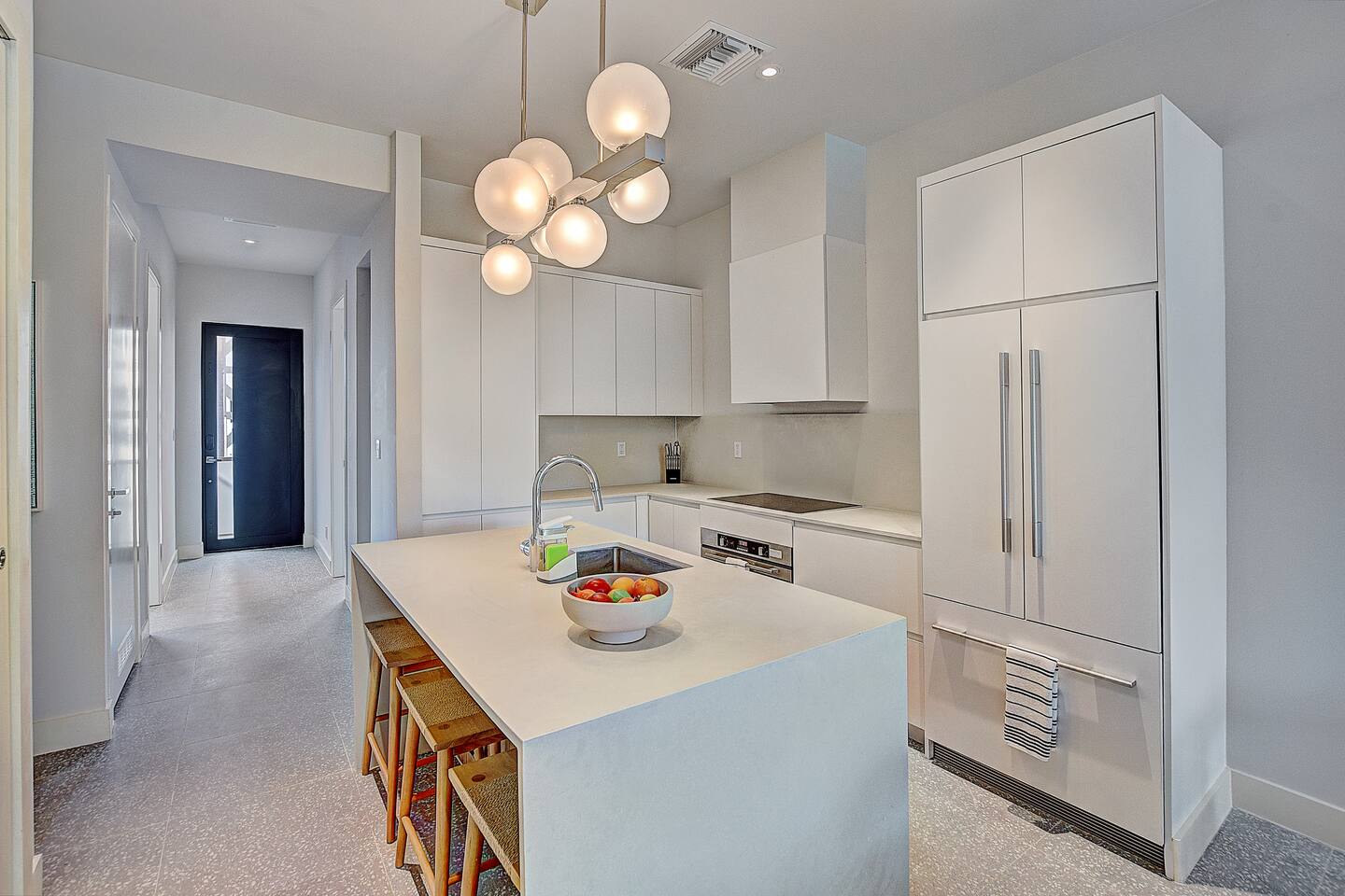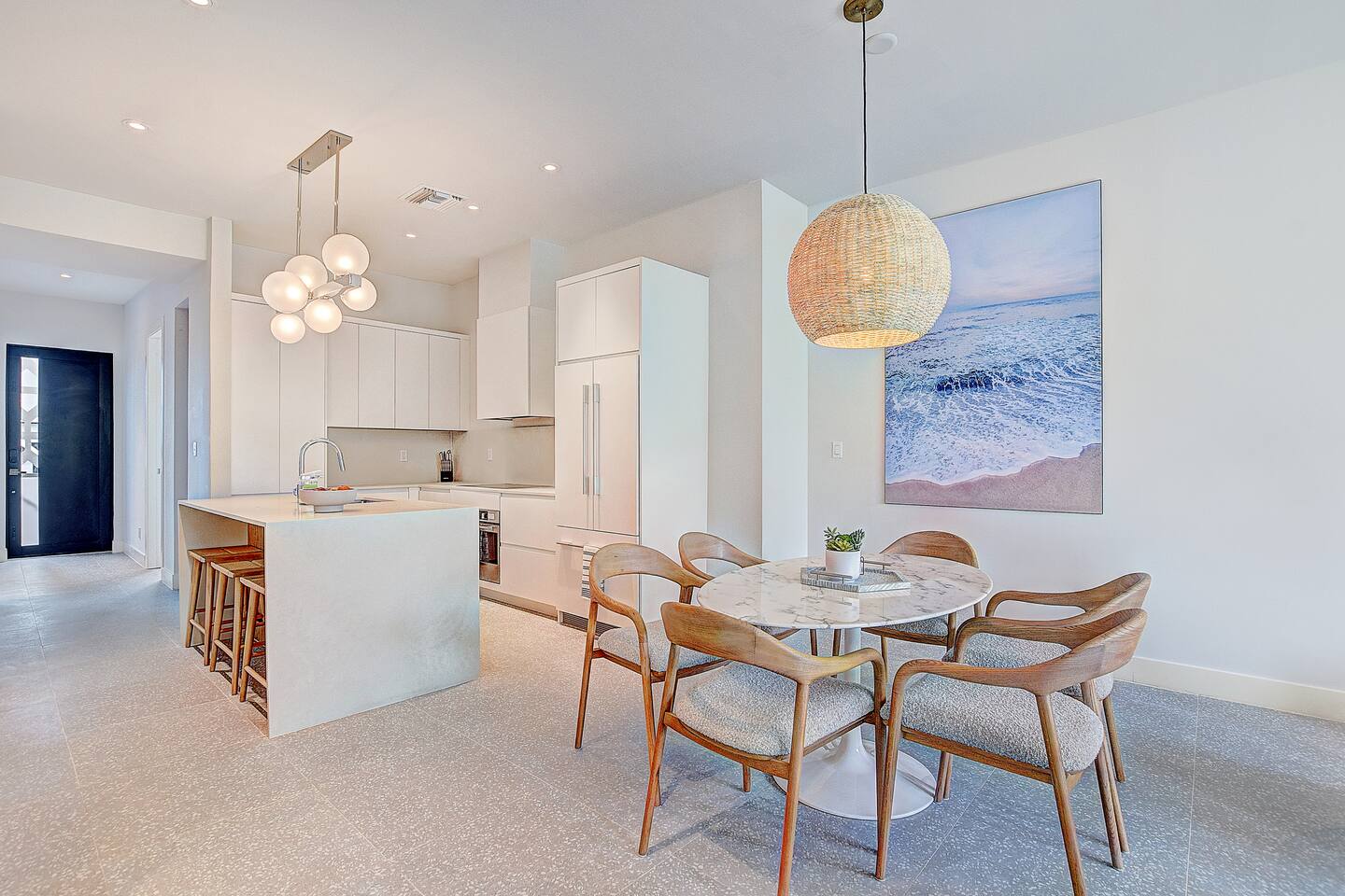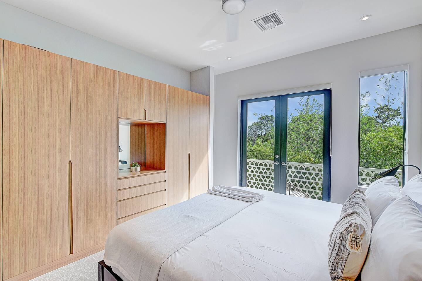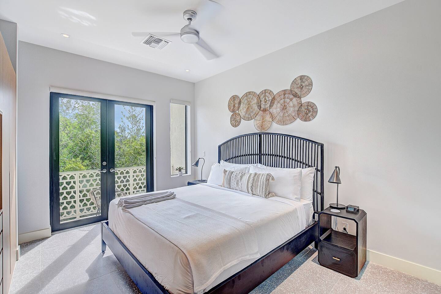 Experience the essence of island living in this modern tropical retreat. Unwind in open, sunlit spaces or on the private balcony. The primary suite offers a king bed, spa-like tub, and shower; the second bedroom has a queen bed, and the third a cozy single. With 2.5 baths, washer/dryer, and access to a pool, gym, parking, and 24/7 security, this gated oasis is perfect for families, couples, and groups seeking comfort and style near the beach.
