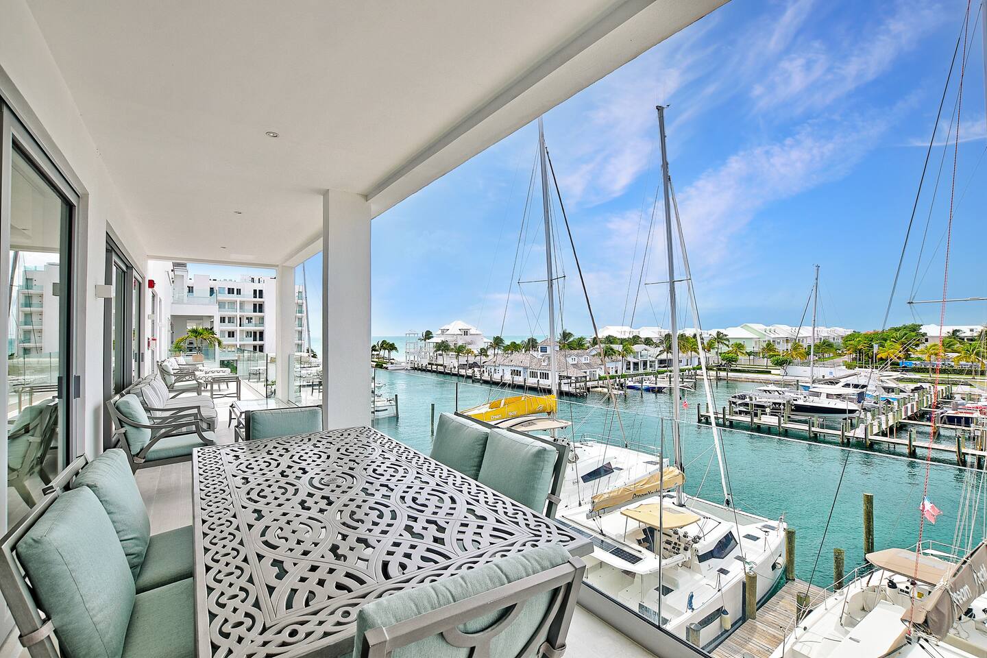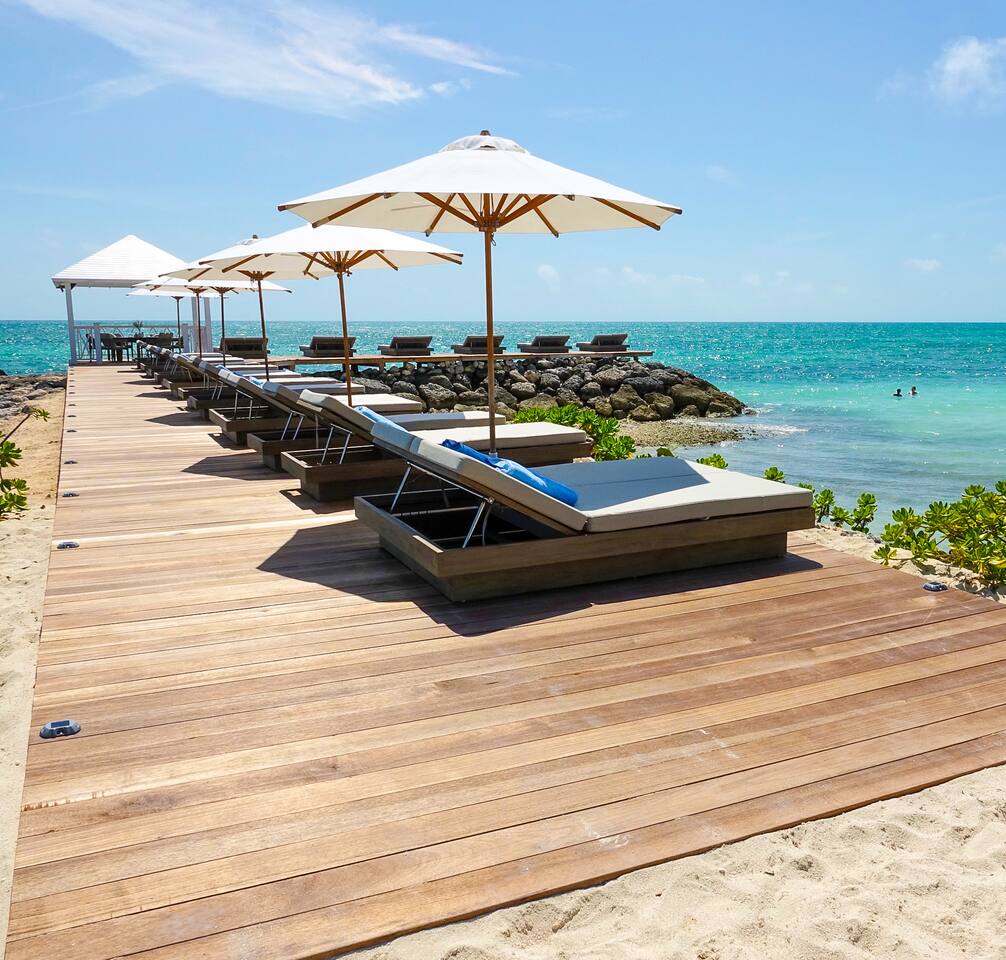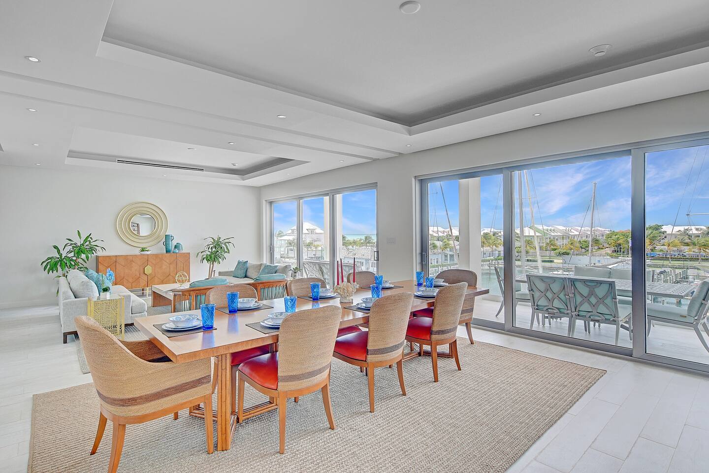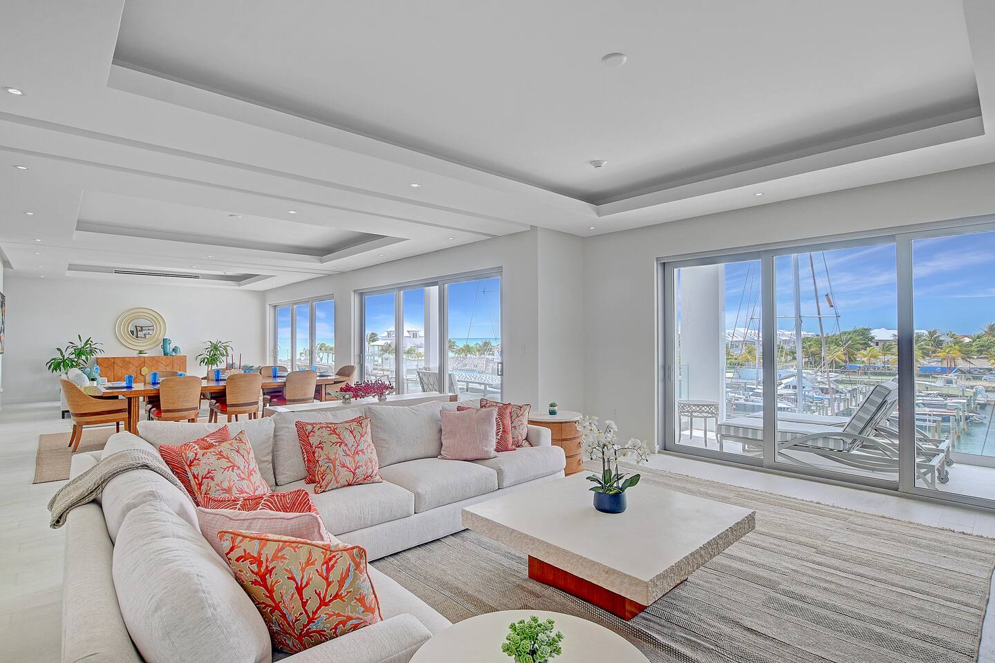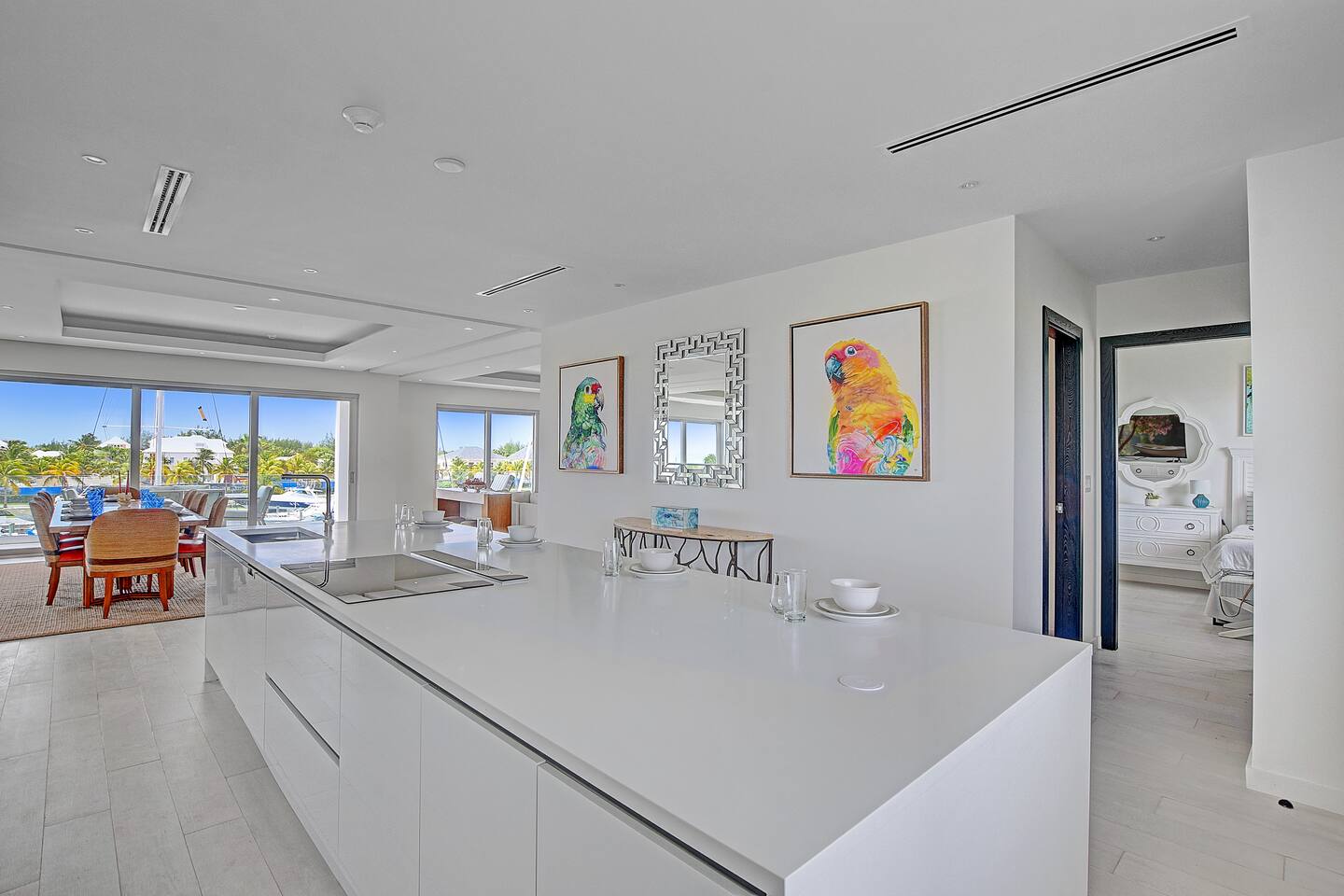 Guests have full access to the residence and all resort amenities within Palm Cay. This includes the private beach, marina, clubhouse, restaurant, pool, gym, and tennis courts. You’ll also have access to the home’s kitchen, living spaces, and outdoor patio. Check-in is self-service, and parking is available on-site.
