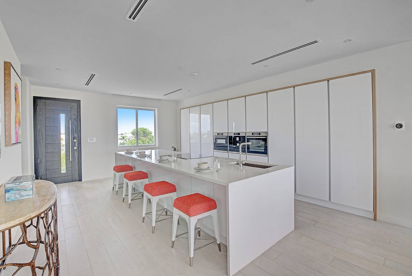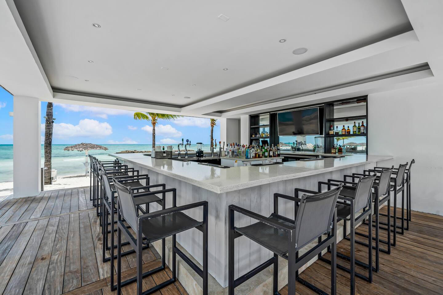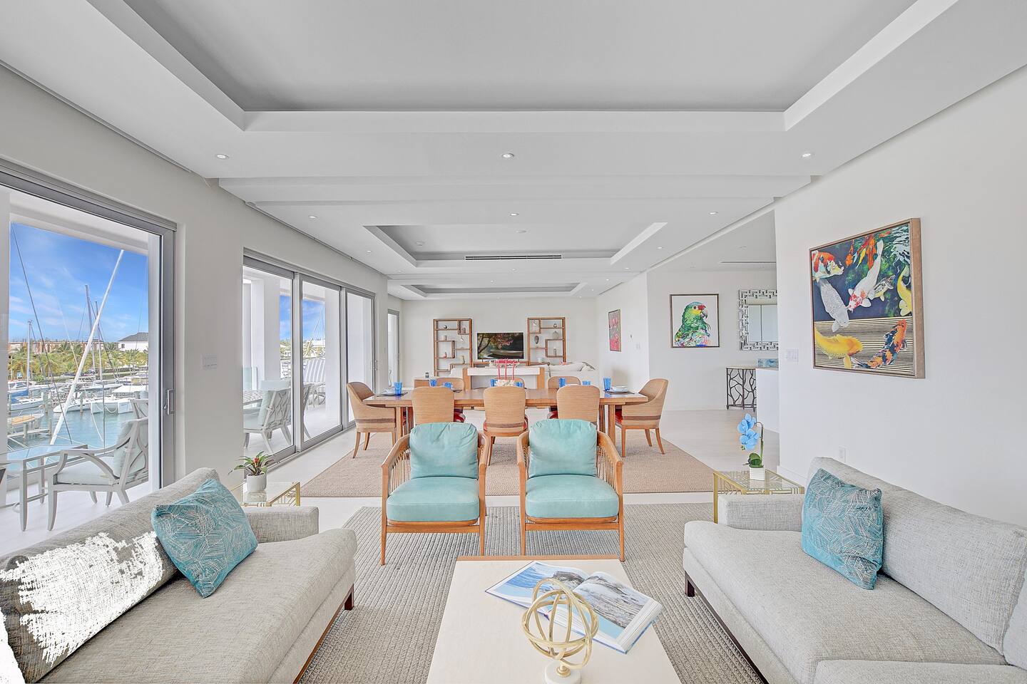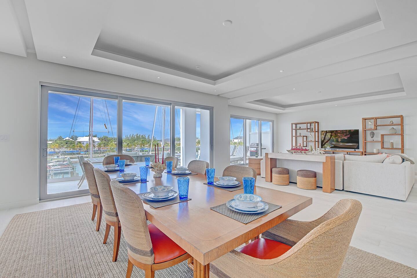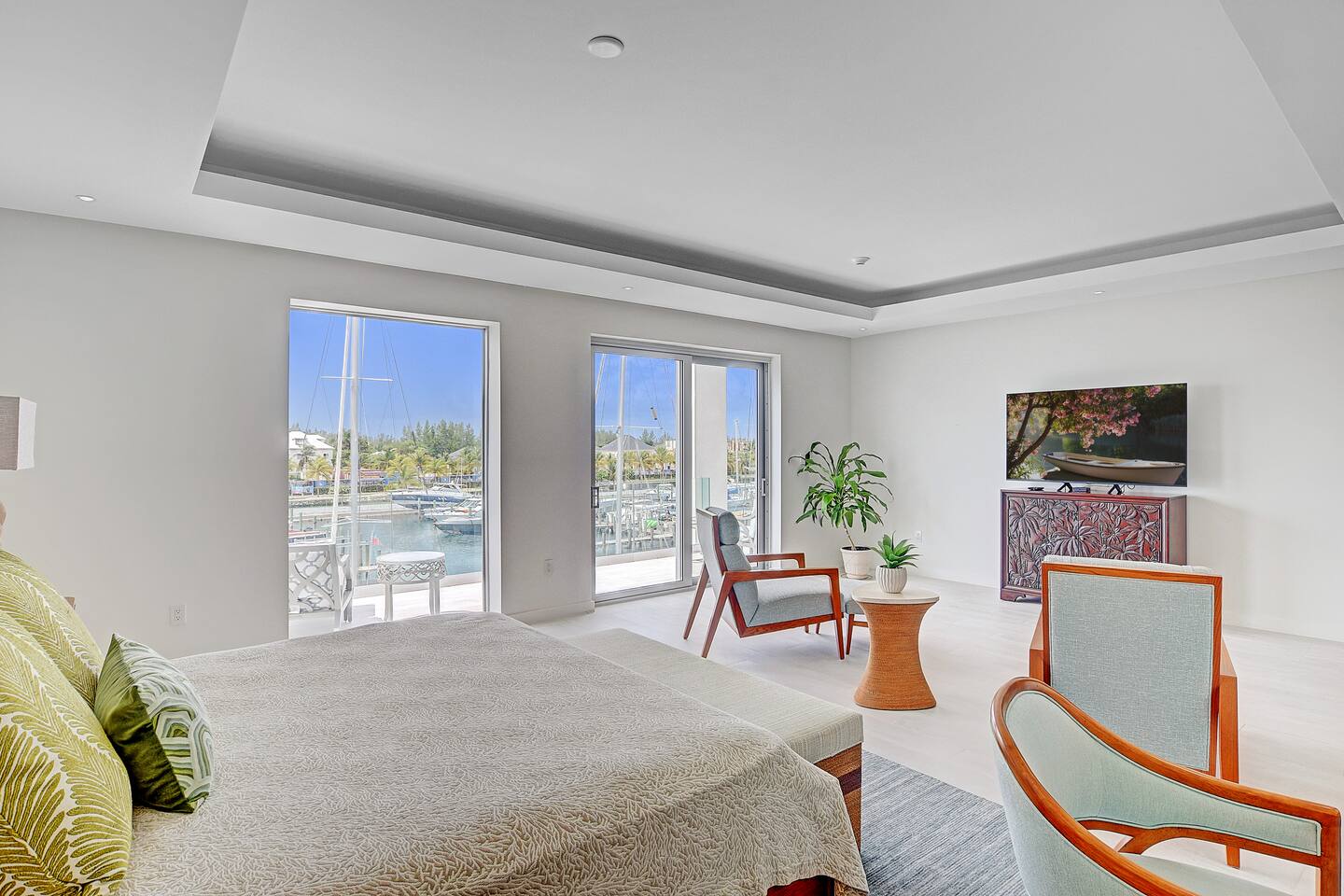 Guests have full access to the residence and all resort amenities within Palm Cay. This includes the private beach, marina, clubhouse, restaurant, pool, gym, and tennis courts. You’ll also have access to the home’s kitchen, living spaces, and outdoor patio. Check-in is self-service, and parking is available on-site.