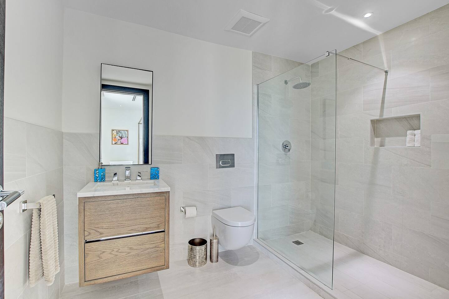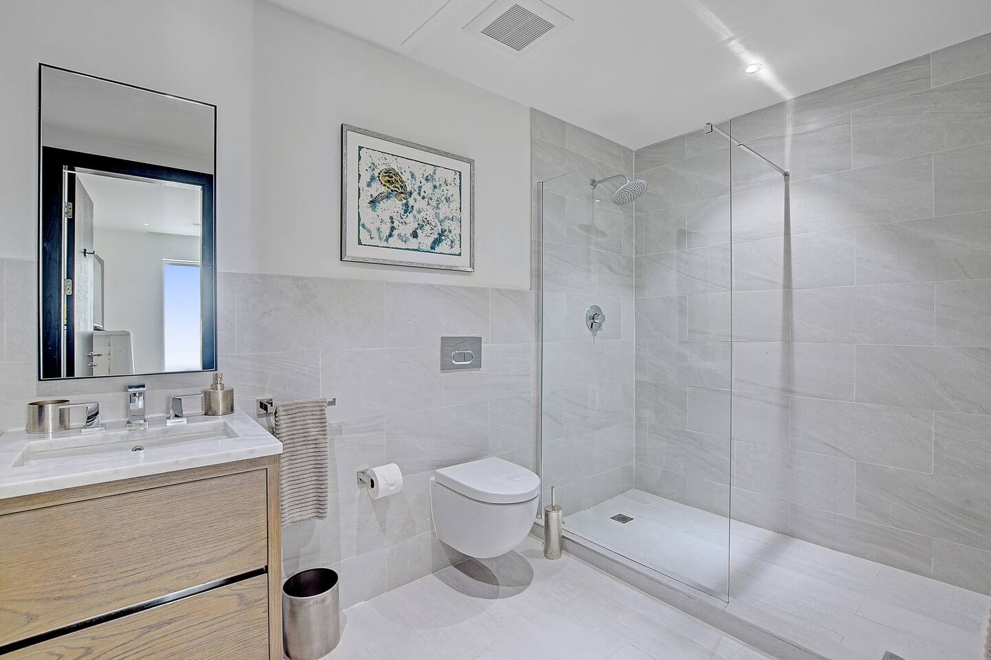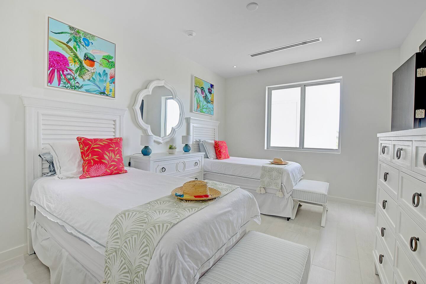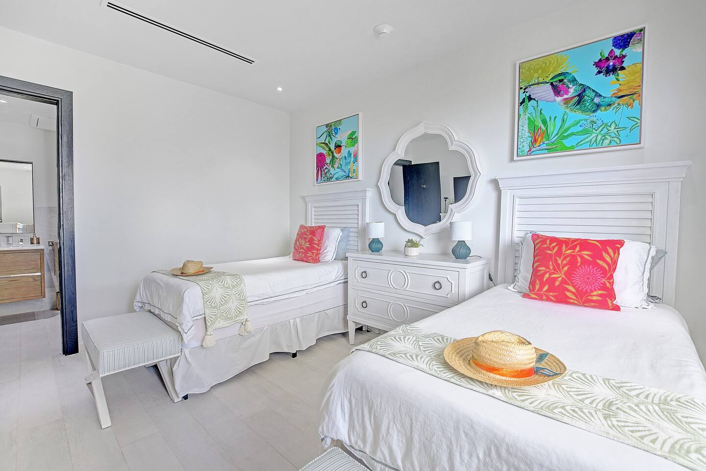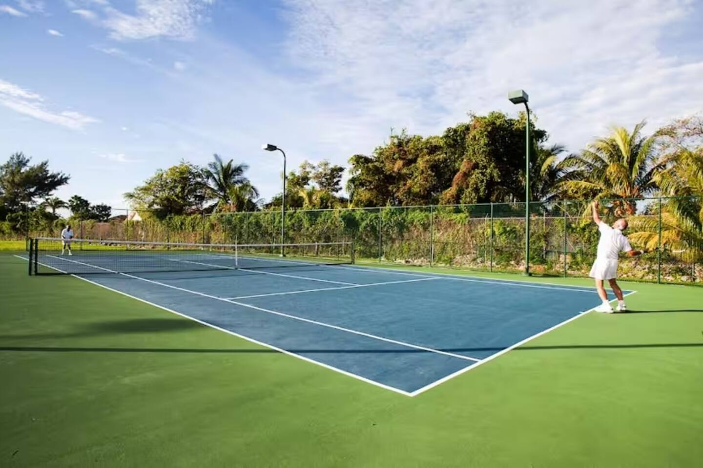 Guests have full access to the residence and all resort amenities within Palm Cay. This includes the private beach, marina, clubhouse, restaurant, pool, gym, and tennis courts. You’ll also have access to the home’s kitchen, living spaces, and outdoor patio. Check-in is self-service, and parking is available on-site.